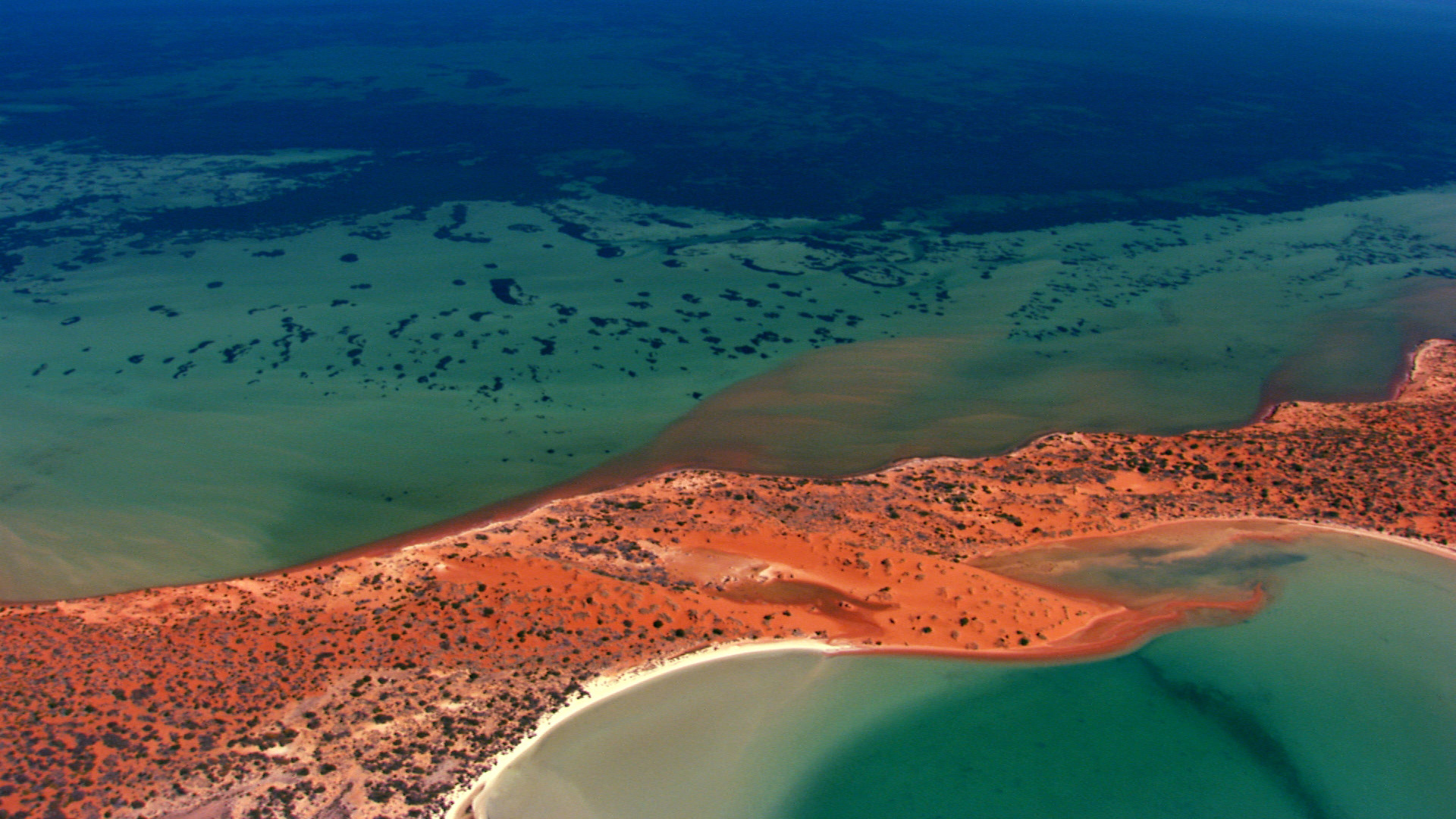 Along Australia's coast, dingos emerge from sand dunes to fish along the shore, while whale sharks gather at Ningaloo Reef for the annual coral spawning.